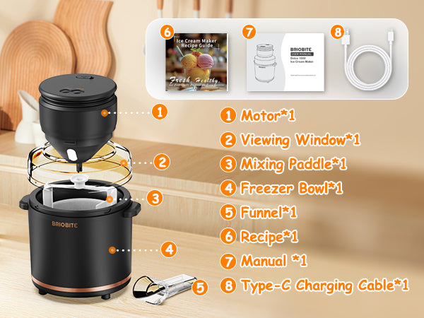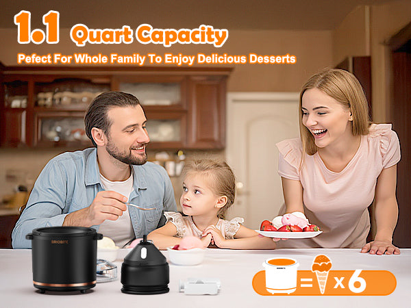 1.1 Quart Ice Cream Maker – Electric Ice Cream Machine for Gelato, Milkshakes & Sorbet,Perfect for 2-3 Servings, Easy to Use & Clean,Black
