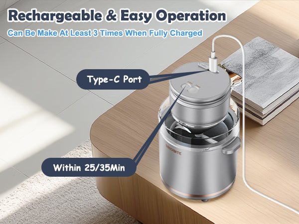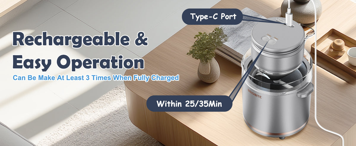 This ice cream maker uses USB-C charging and a 2600mAh lithium battery, which can make at least 3 ice creams on one charge. In addition, it can be used with or without charging, solving the problem of finding a charging source.