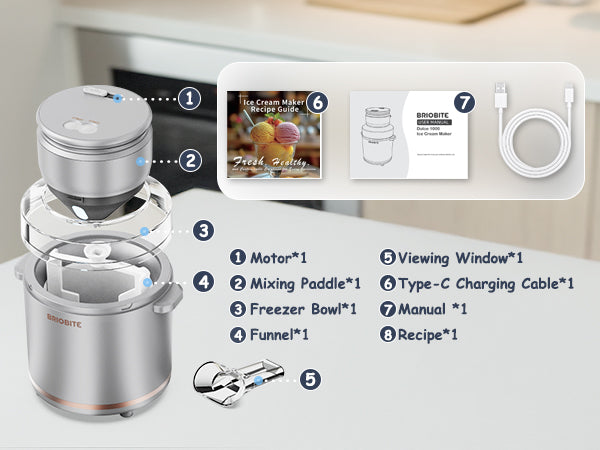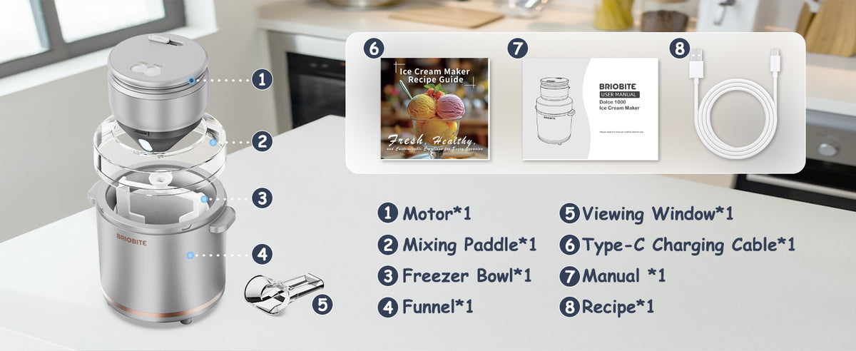 With the BRIOBITE ice cream maker, enjoy fresh, wholesome treats—homemade soft ice cream, sorbet, and slushu—in just 25-35 minutes. Made with real ingredients and no artificial additives, you can create naturally delicious, guilt-free desserts anytime. Simply pre-freeze the bowl for more than 16 hours, and indulge in creamy, homemade goodness in no time.
