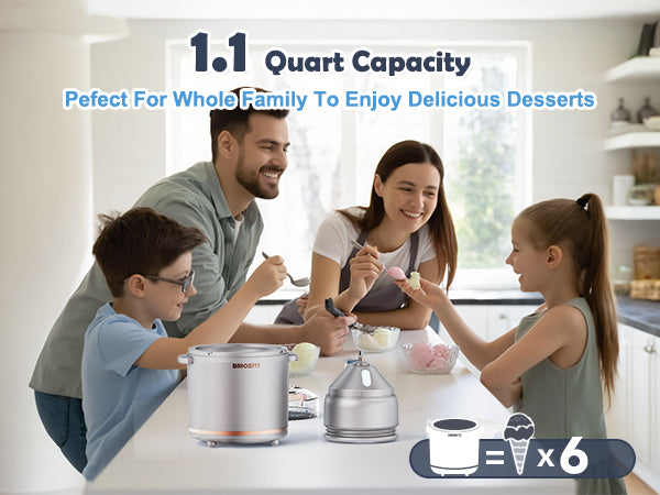 1.1-quart capacity is perfect for making enough ice cream to share with family and friends. Whether you're hosting a gathering or enjoying a cozy evening at home, this generous size ensures everyone gets a taste of your delicious homemade frozen treats